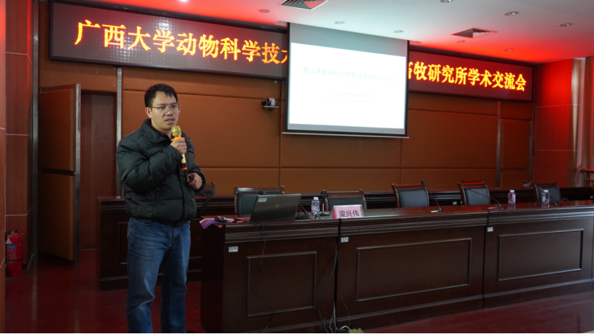 会议由广西畜牧研究所所长吴柱月研究员主持。首先是专家学术报告环节,韦祖樟教授做了《申报国家自然科学基金的体会》报告;梁兴伟教授进行了题为《罗汉果甜苷在动物繁殖中的应用研究》的学术报告;陆阳清教授分享了有关《家禽种质资源保存与创新利用》的学术报告;广西农业职业技术大学的涂黎晴博士汇报了在家禽抗病育种研究上的成果。学术报告激起了与会者的热烈交流,启发了双方学者的研究思路,为进一步加强了双方的合作与交流奠定了基础。