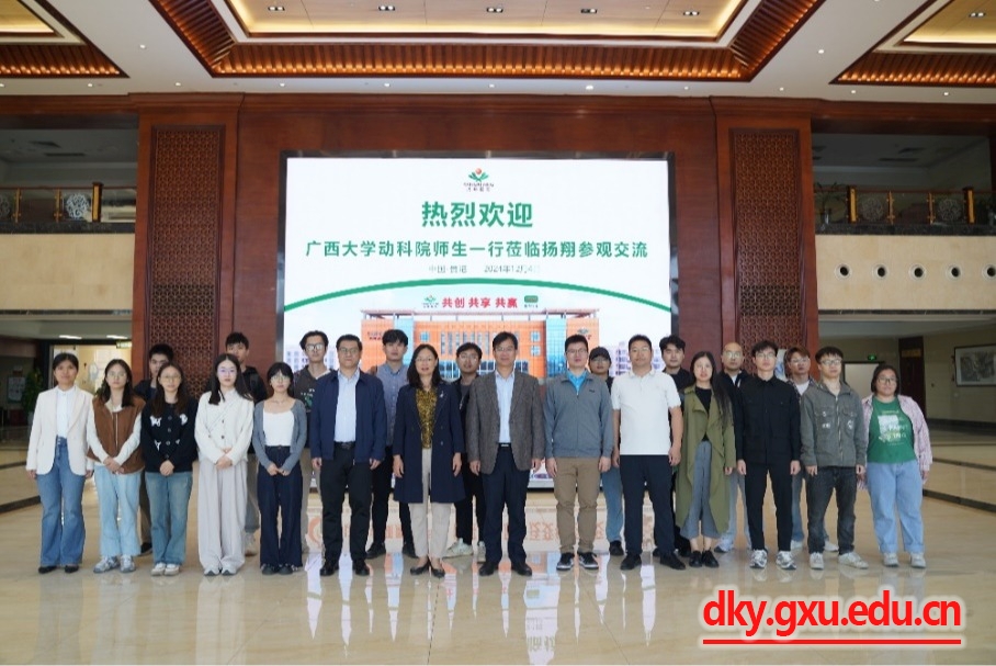 为进一步加强校企合作交流,实现校企优势互补与资源共享,推动产教研融合发展,开拓更多就业岗位和机会,12月4日,动物科学技术学院党委书记韦小强,党委副书记沙建,动物医学专业教师尹业师,辅导员邹佳琪、陆维鸿及学院硕博研究生代表等20余人前往广西扬翔股份有限公司参观交流并看望校友。广西扬翔股份有限公司创始股东、人力资源中心副总监覃丽珍等陪同参观和座谈交流。