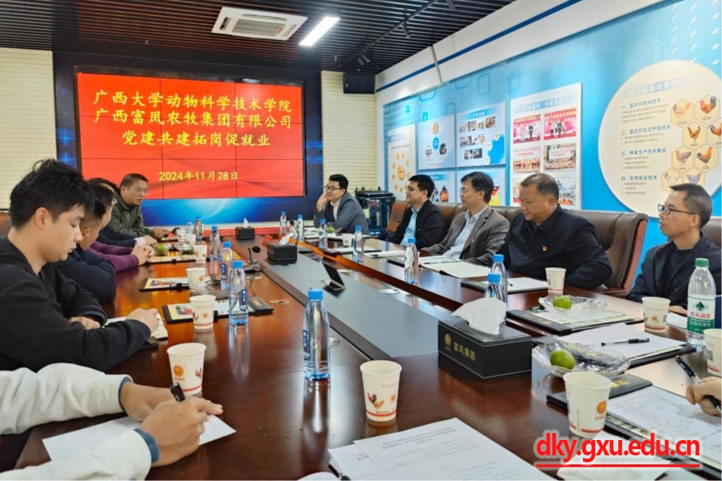 为进一步凝聚党建合力,深化校企合作,实现产学研融合发展。11月28日下午,动物科学技术学院党委书记韦小强带队赴广西富凤农牧集团有限公司开展党建共建访企拓岗促就业活动。