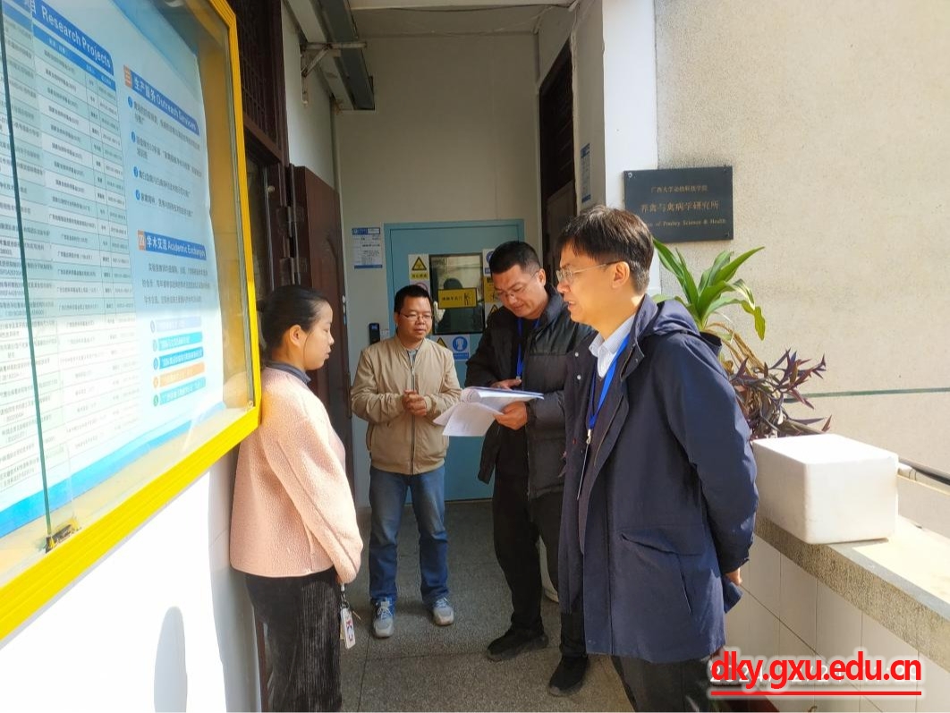 为贯彻落实龙8long8手机登录2024年实验室安全文化月活动要求和动物科学技术学院实验室安全月活动工作安排,12月24日上午,龙8long8手机登录党委书记韦小强,副院长蒋钦杨一行带队分两组对全院实验室展开岁末年初实验室进行安全隐患大排查。