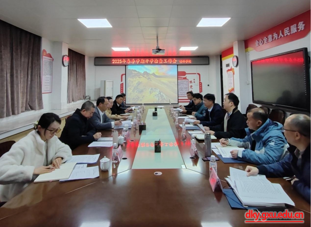 于副校长对学院工作予以充分肯定。他强调,2025年是“十四五”收官之年,也是“十五五”规划之年。学院领导班子要聚焦学院发展短板,进一步做好学院发展的长远谋划;要加强学院人才培养体系建设,加快高层次人才引进和培育;要发挥学院产学研优势,主动加强与广西畜牧产业的对接与合作;要自我加压,积极组织学院教师谋划、申报国家级项目、奖项;要加快推进农林动大楼建设、P3实验室申报、动物医院运营建设等工作。