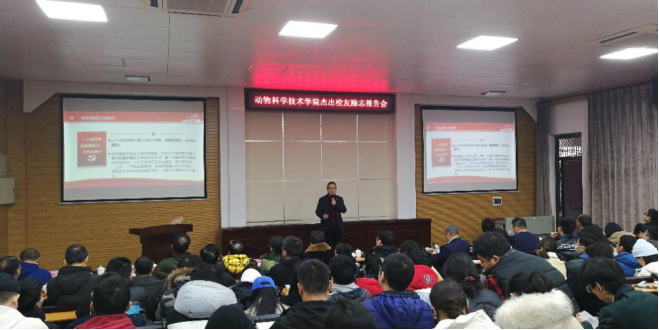 接下来沈水宝教授介绍了生猪产业联合体的新模式。他提到农村发展不仅仅发展农业,还要为乡村保留青山绿水。他提出养猪要有新模式,要有模式创新,打造优质猪肉。在场的广大师生受益匪浅。